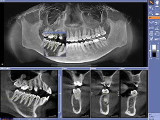 従来のレントゲンでは平面的な撮影しか行うことができず、骨の様子などが詳しく分かりませんでした。しかし、CTスキャンでは3D撮影が可能ですので、インプラントを埋め込む際に必要な、正確な骨の形状・神経や血管の位置などが詳細に分かることで、安全なインプラント治療が可能になります。