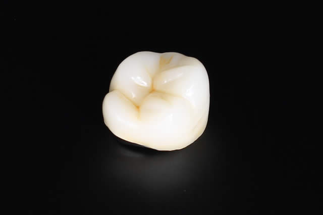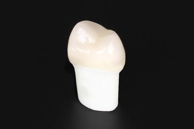人工ダイヤモンドに使われるジルコニウムをフレームとして表面に陶材(セラミック)を焼き付けて、他の歯と色を合わせた素材です。陶材は、変色や変形がなく人それぞれの歯の美しさを表現できます。